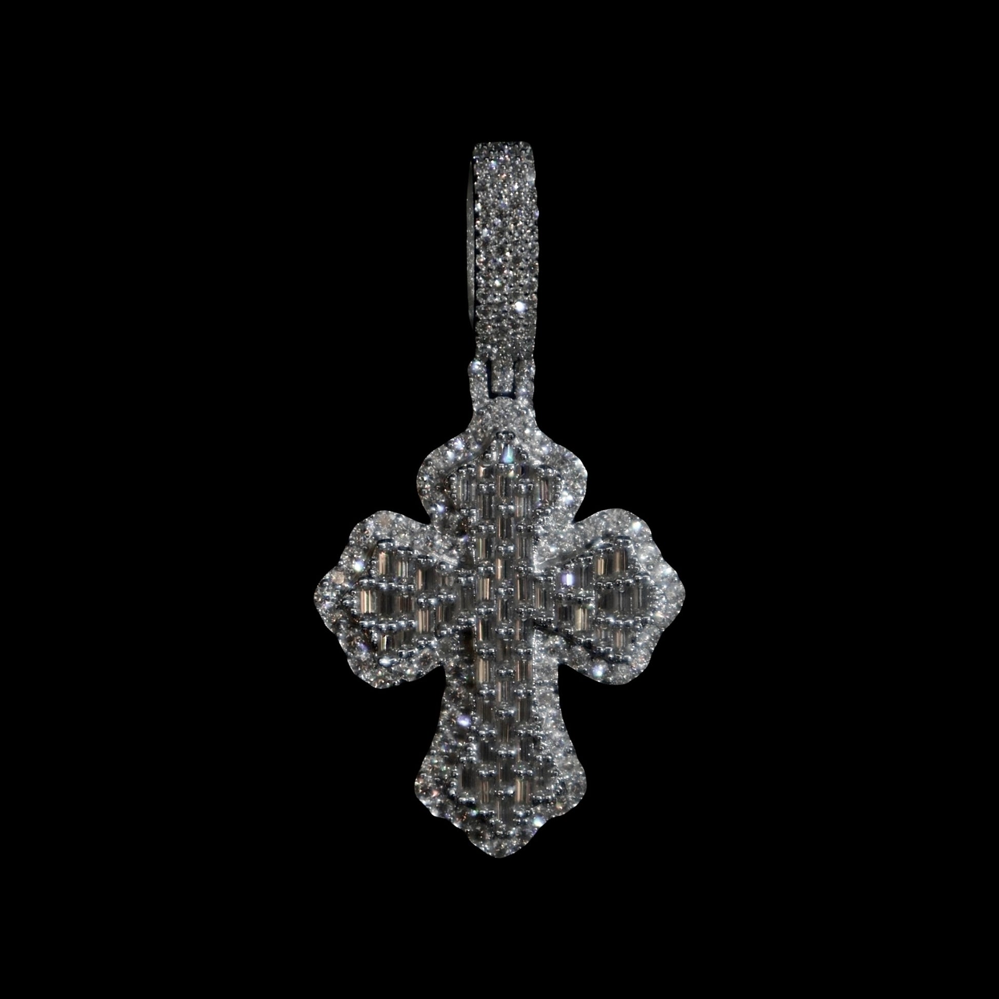 925 Sterling Silver VVS Baguette Cut Moissanite Ice Out Cross Pendant