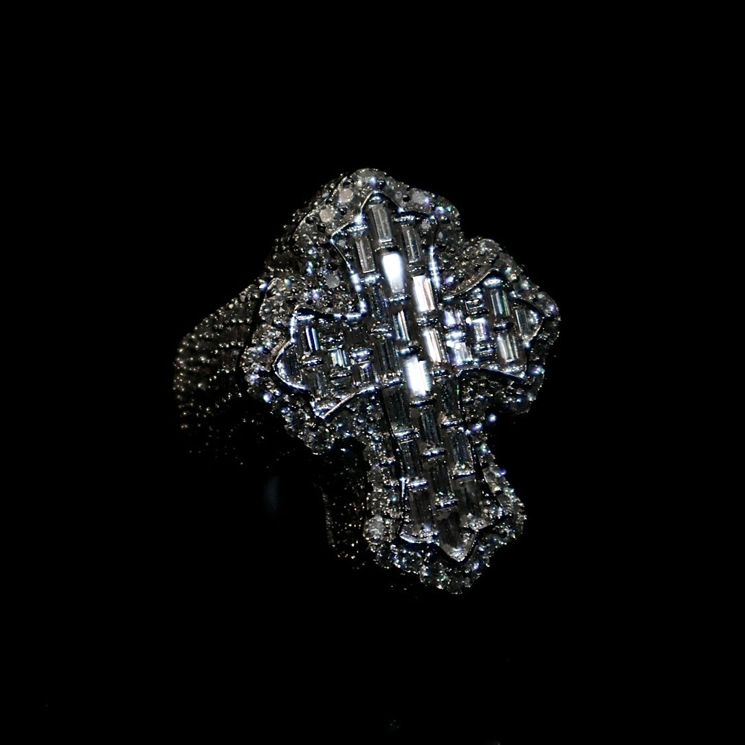 VVS Baguette Cut Moissanite Ice Out Cross Ring in 925 Sterling Silver